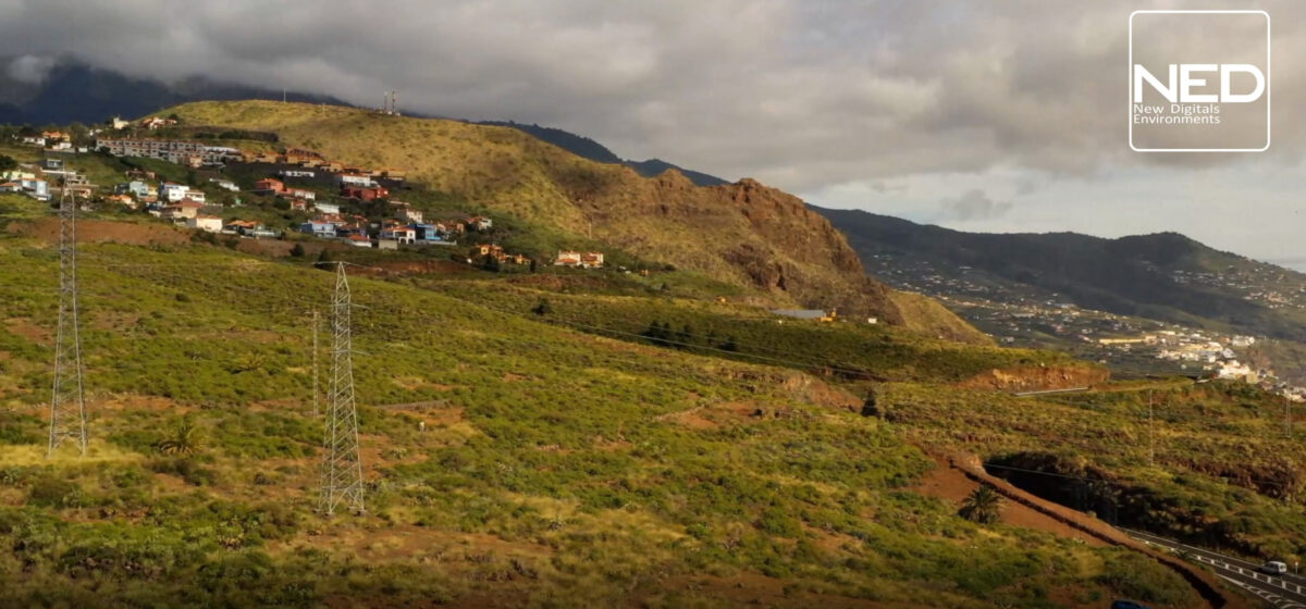 Sección de terreno escaneado con dron a precisión centimétrica y transformado en un espacio visual 360º para situar apoyos en líneas eléctricas. (Visualizar el ejemplo de forma interactiva 360º haciendo click dentro de la ventana después de la carga)